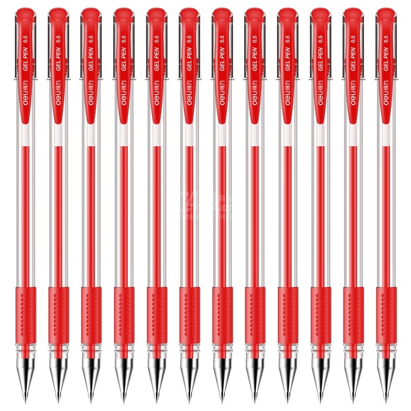 “deli/得力”0.5mm 中性笔 单盒装(红色经典办公子弹头水笔签字笔12支/盒)