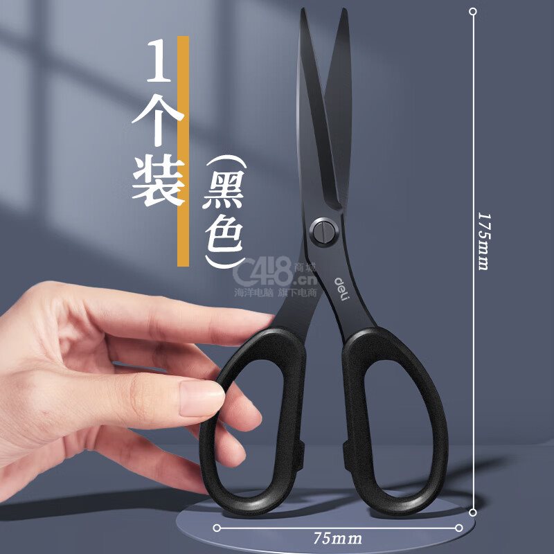 “deli/得力”No.77790 剪刀 1把装(黑色175mm人机造型防锈处理)