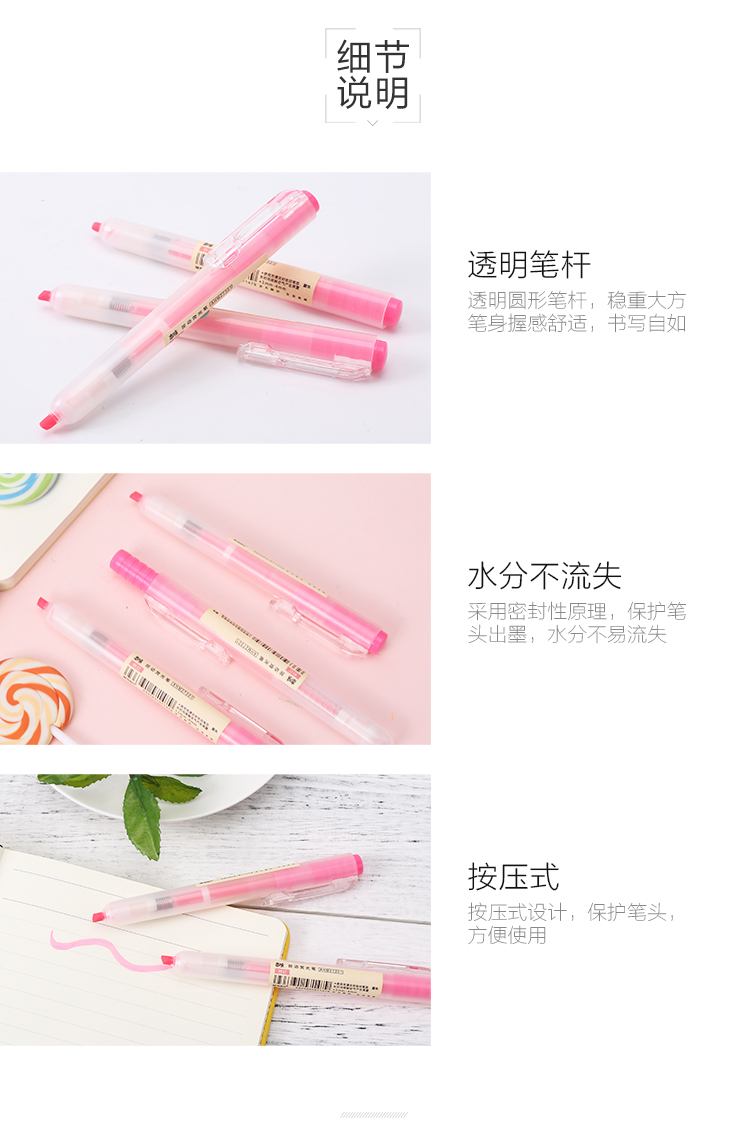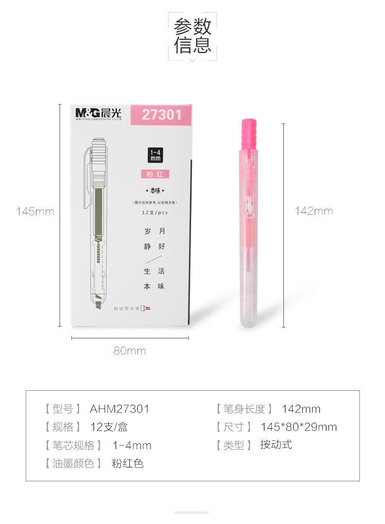 “M&G/晨光”AHM27301 按动荧光笔 单支装(粉红色本味系列4mm单头彩笔办公学习重点标记区分记号笔AHM27301C1 12支/盒)