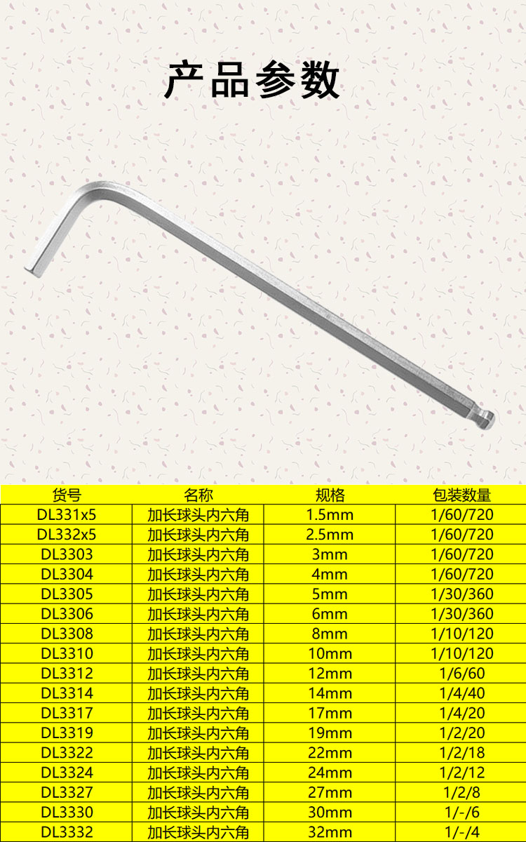 “deli/得力”DL3304 加长球头内六角 单支装(4mm铬钒钢内六方扳手)
