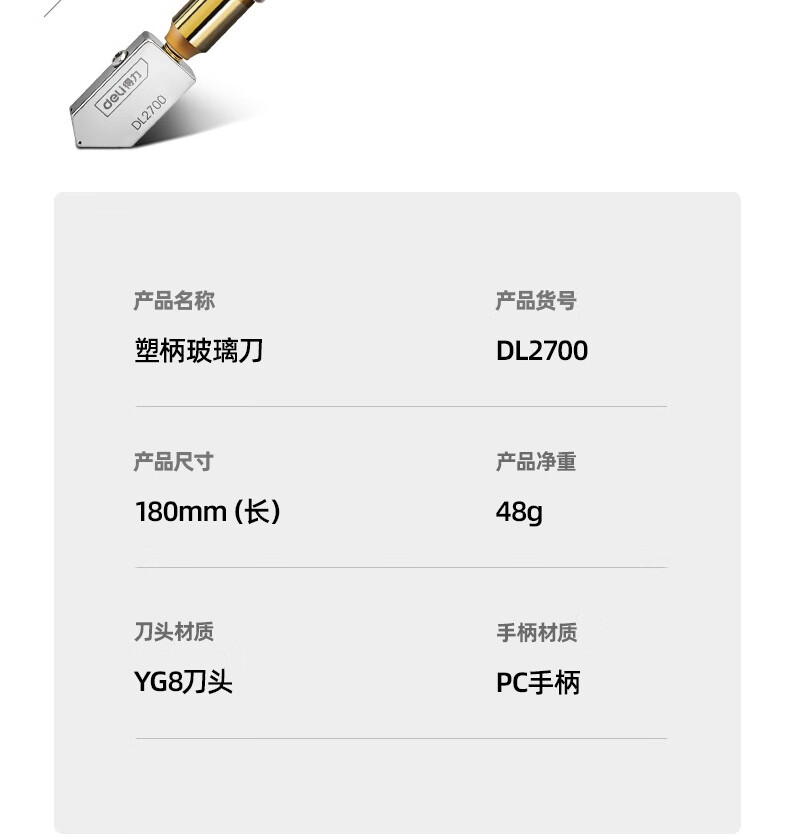 “deli/得力”DL2700 塑柄玻璃刀 单把装(玻璃切割刀)