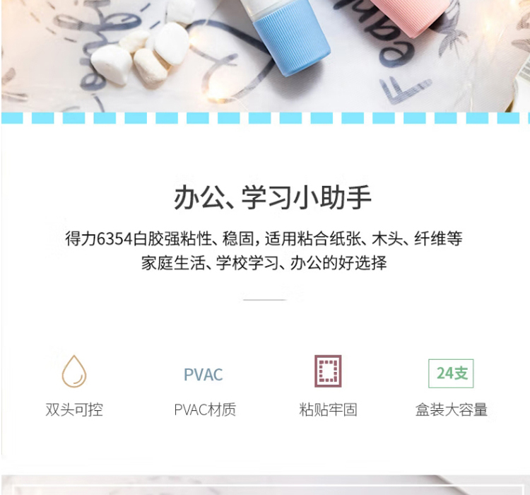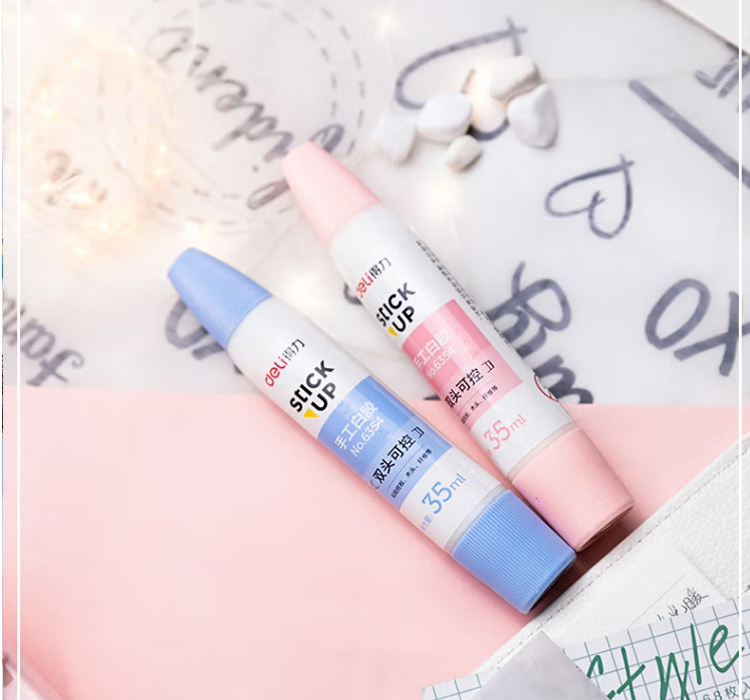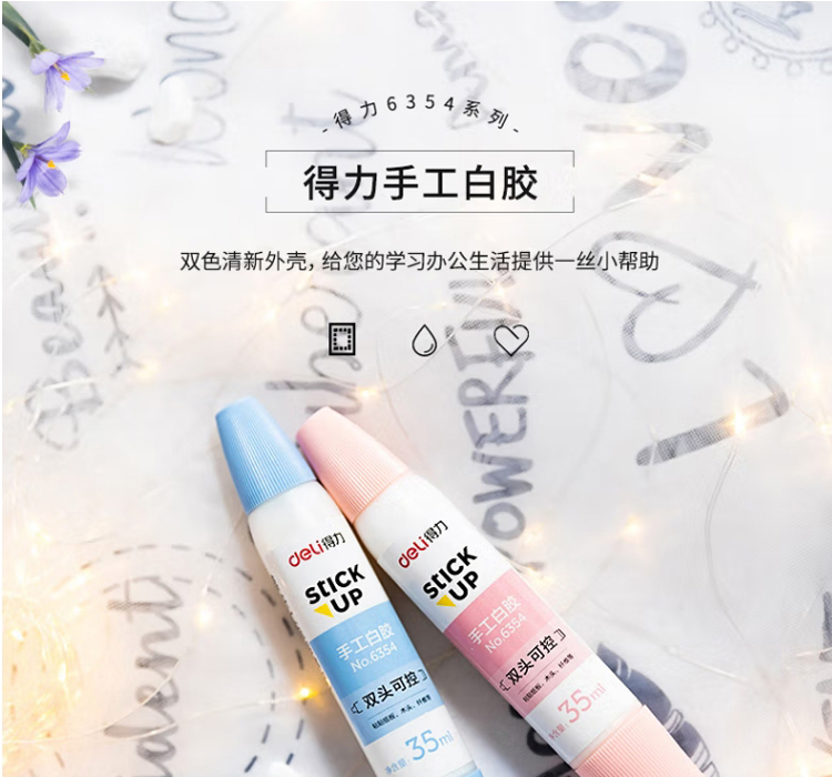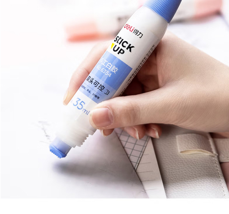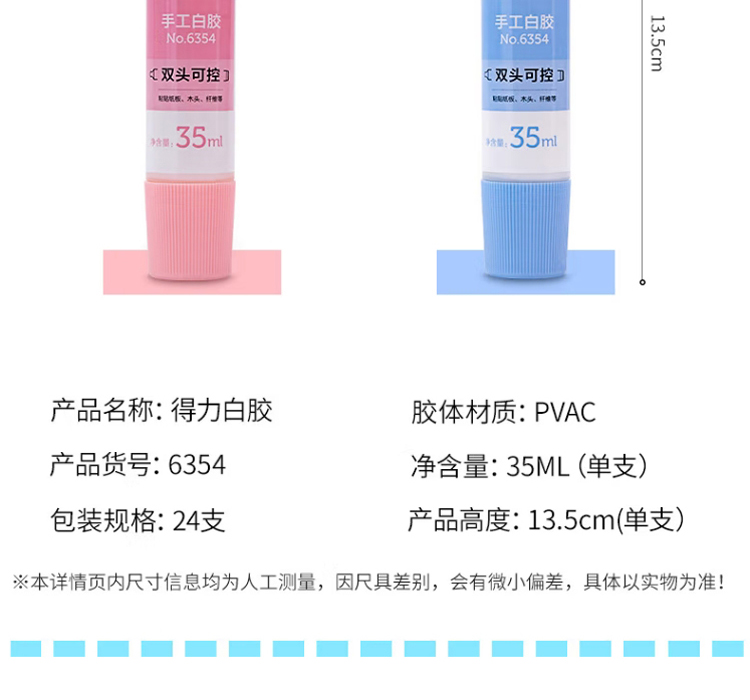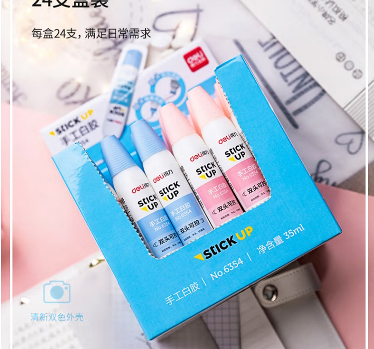 “deli/得力”No.6354 手工白胶 单支装(混色双头胶水白乳胶学生美术35ml液体胶可控涂胶儿童粘贴纸板木头纤维手工课24支/盒)