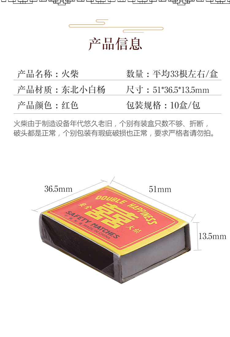 “Kawatu/卡瓦图”KWT068 火柴 单盒装(复古红双喜老式一次性洋火安全户外酒店婚庆喜庆)