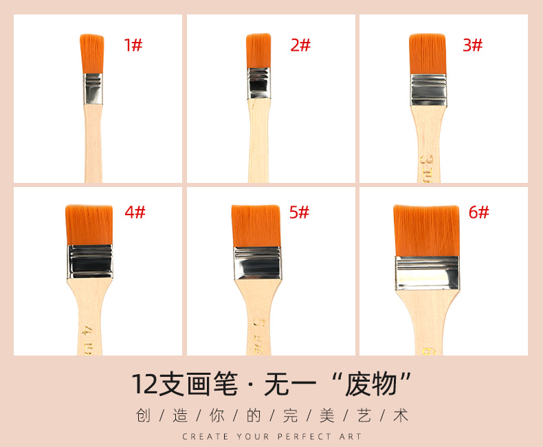 “BO TE TI/铂特体”5号 尼龙毛板刷 单把装(黄色绘画刷油漆刷墙漆清理木柄毛刷画笔尼龙刷)