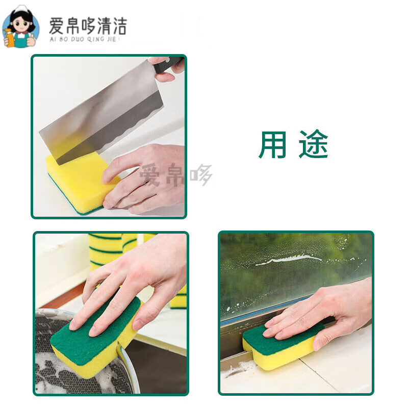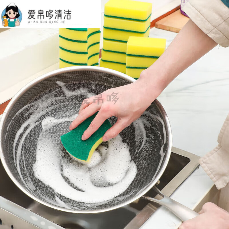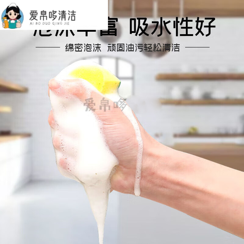 “AIBODUO/爱帛哆”双面清洁款 海绵擦 单袋装(洗碗百洁布清洁刷厨房用品锅刷碗神器洗碗布耐用)