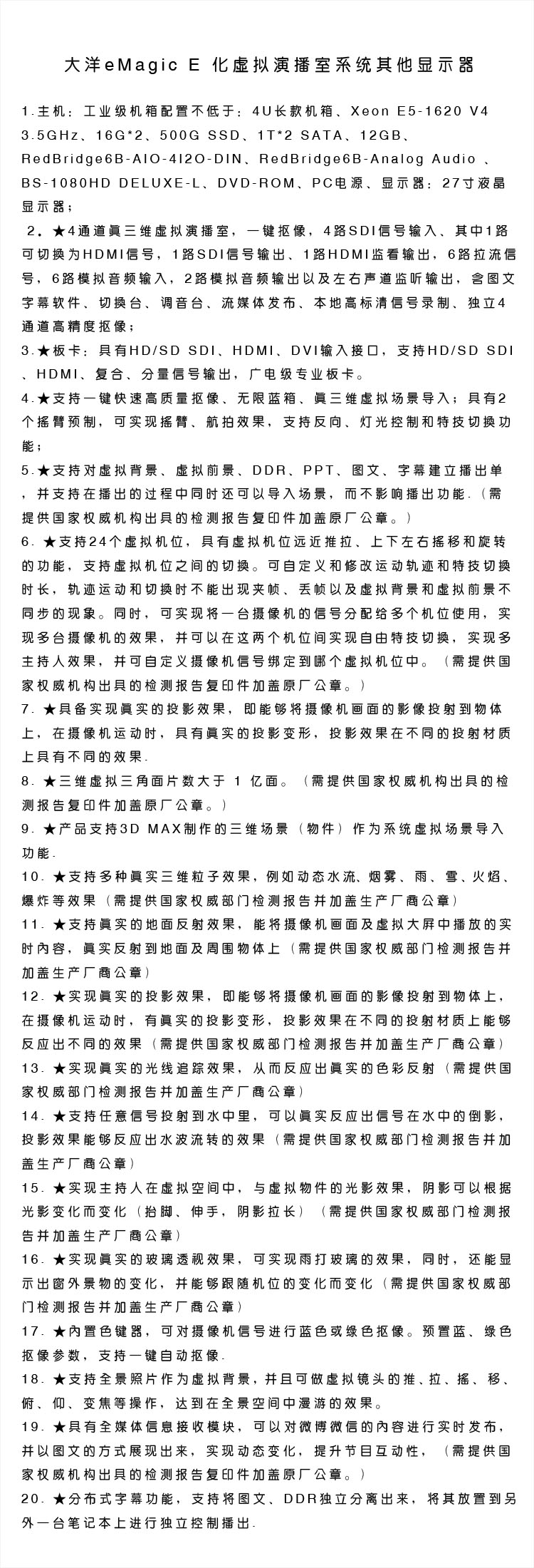 “DAYANG/中科大洋”eMagic E 金彩一体化虚拟演播室系统 单套装(4通道真三维虚拟演播室)