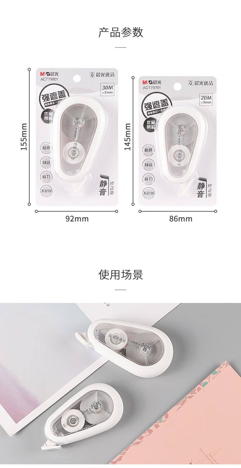 “M&G/晨光”ACT79801 静音修正带 单个装(晨光优品学生用涂改带改正带耐摔ins日系初中生小巧便携高中30m)