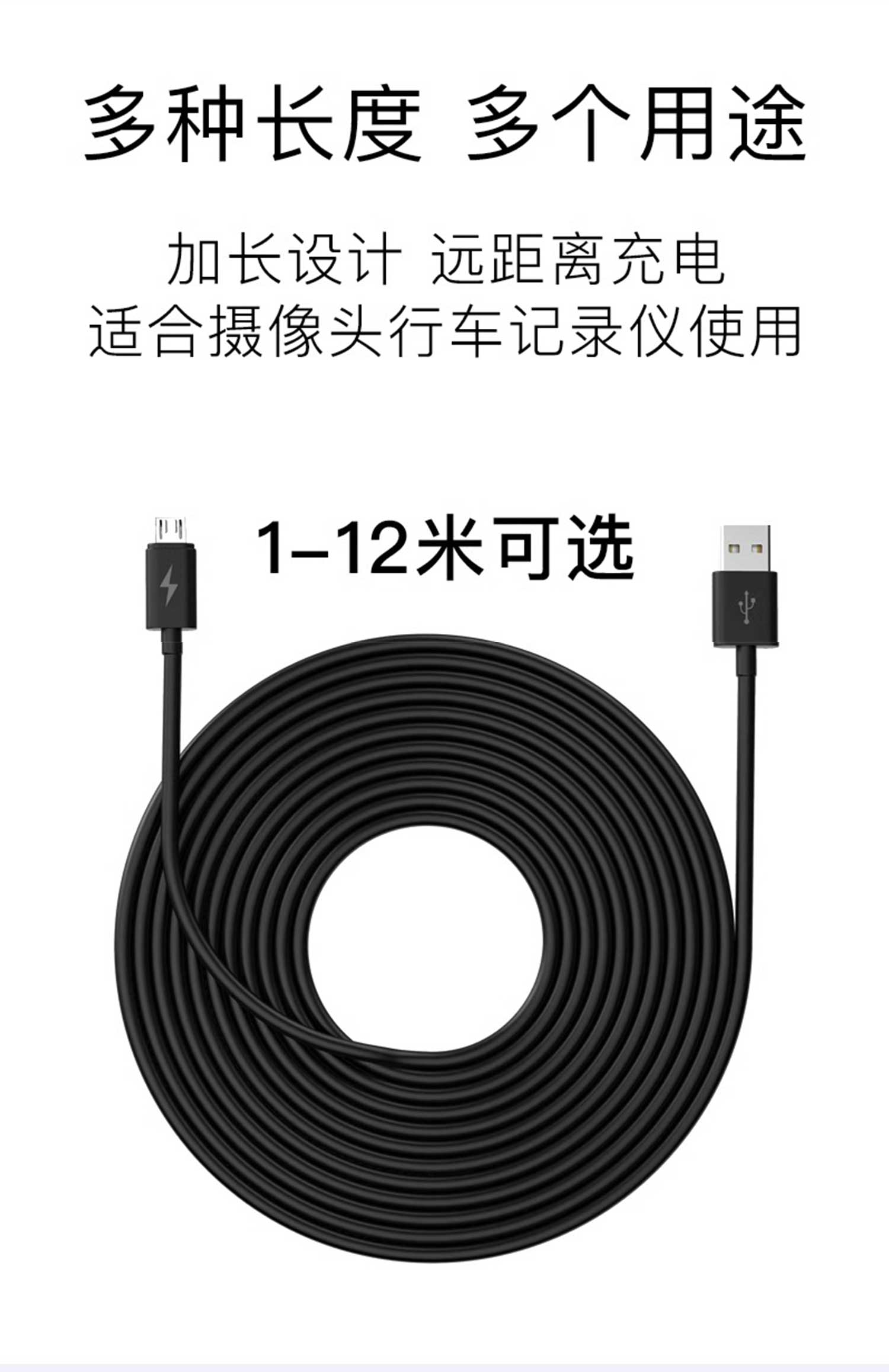“MHEART”5米 数据线 单条装(TPYC超长安卓手机充电线监控360小米摄像头电源线USB延长线行车记录仪通用五米/5m)