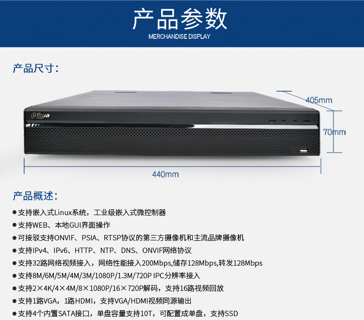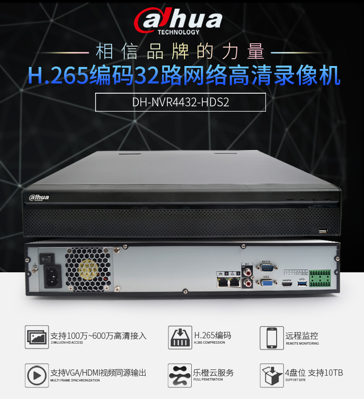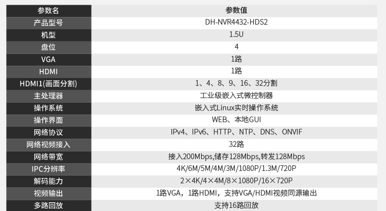 “dahua/大华”DH-NVR4432-HDS2/I 网络硬盘录像机 单台装(32路4盘位高清输出双网口监控录像机不带硬盘DH-NVR4432-HDS2)