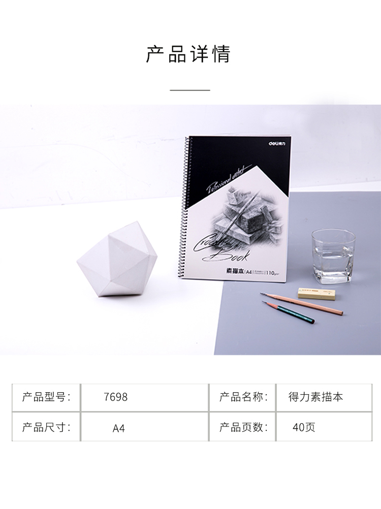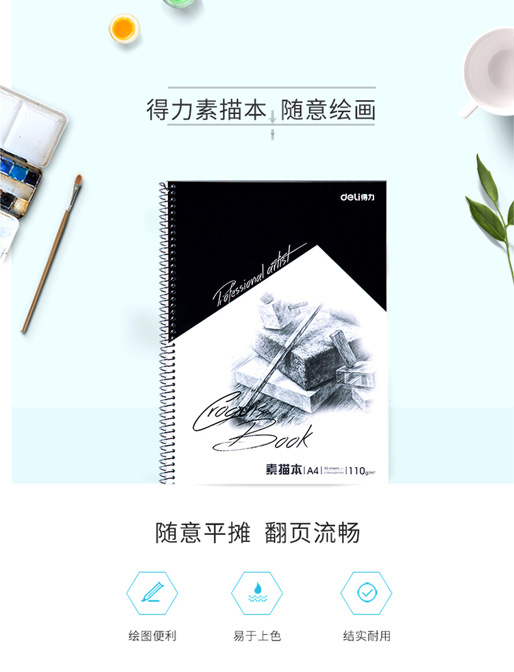“deli得力”7698 素描本A4 专业美术用纸40张蓝色(海洋电脑 0418商城)