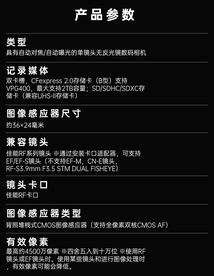 “Canon/佳能”EOS R5 Mark II 摄录一体机 单台装(全画幅专业微单单机身)