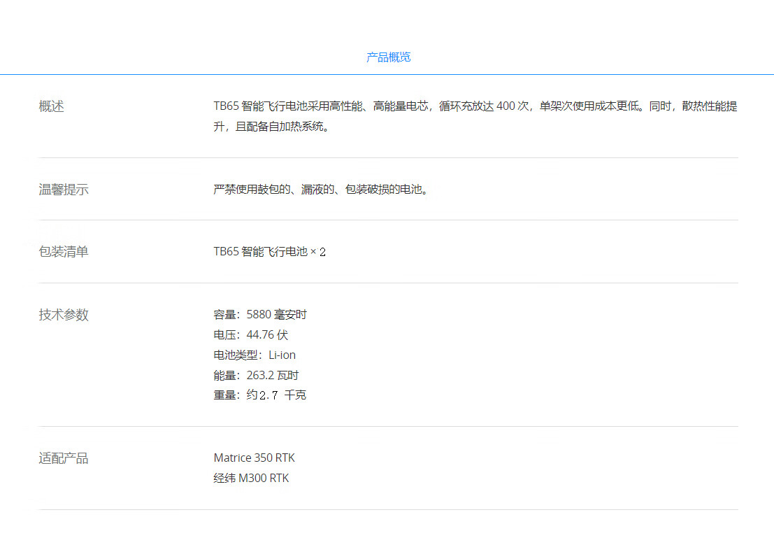 “DJI/大疆”TB65 智能飞行电池 单块装(适配DJI Matrice经纬M350 RTK/经纬M300 RTK无人机备用电池配件)