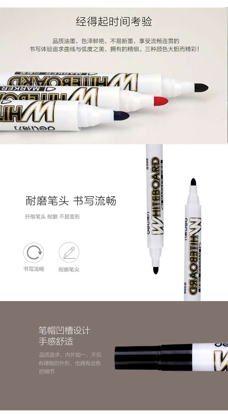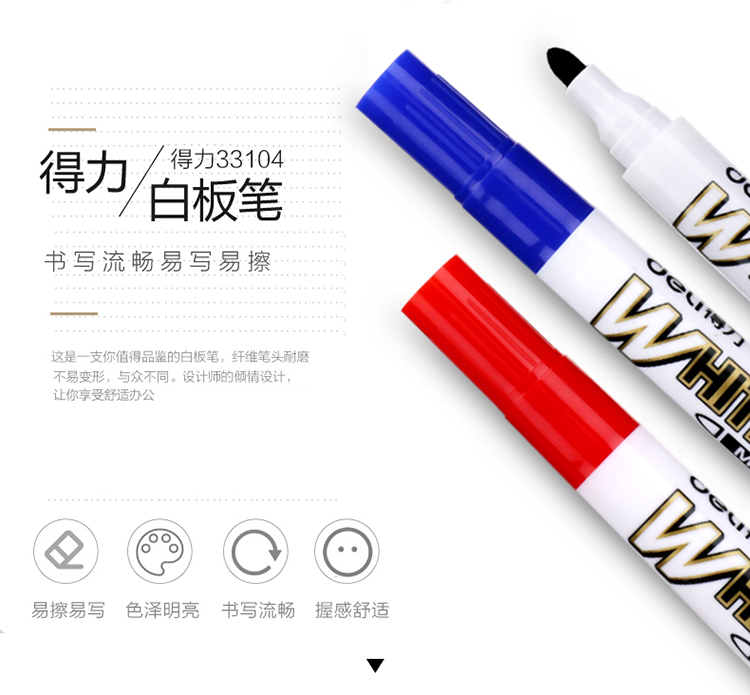 “deli得力”33104 办公会议易擦不留痕白板笔 4支组合装(2黑+1红+1蓝)(海洋电脑 0418商城)WLZG