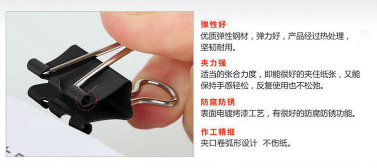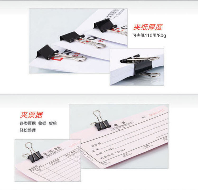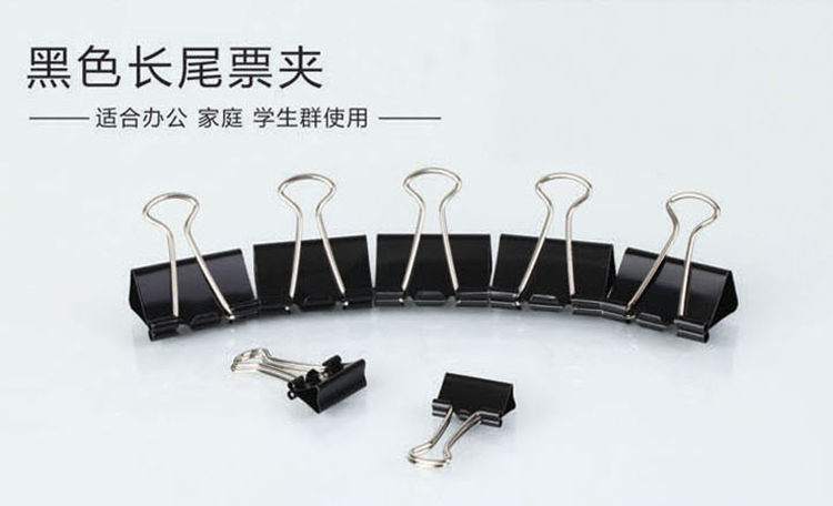 “COMIX/齐心”B3608 长尾票夹 12只/盒装(黑色4#25mm黑色票据夹金属燕尾夹铁夹子)