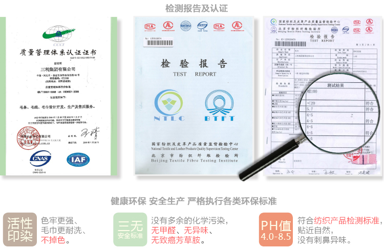 <p>三利集团创建于1986年,历经二十余年的艰苦创业,现已发展为以毛、棉研发制造业为主,向金融证券业、投资咨询业、房地产业、品牌服饰、家用纺织业等领域发展的大型民营企业集团。</p> <p>目前拥有三利毛纺厂、金三利毛纺有限公司、三利集团服饰有限公司、新资源投资咨询公司、三利国际服装公司等多家全资和控股企业。<br> <p>三利毛巾是集团企业战略的重要组成部分,目前是中国北方一家大型的毛巾生产企业,是中国家用纺织品行业协会的常务理事企业。</p> <p>公司集棉纺和毛巾的织造、染色、整理于一体,现有员工7000余人,拥有23000平方米的纺纱车间,36000平方米的现代化染色、织造和后整理车间。质量是企业发展的核心动力,公司拥有完善的产品设备和质量检验体系,技术装备达到行业先进水平。</p> <p>企业通过ISO9002国际质量体系认证,ISO14001环境管理体系认证,产品获得了欧盟Oeko-Tex Standard 100证书。</p>