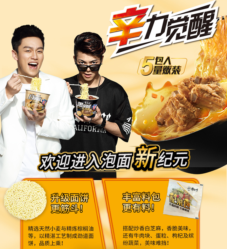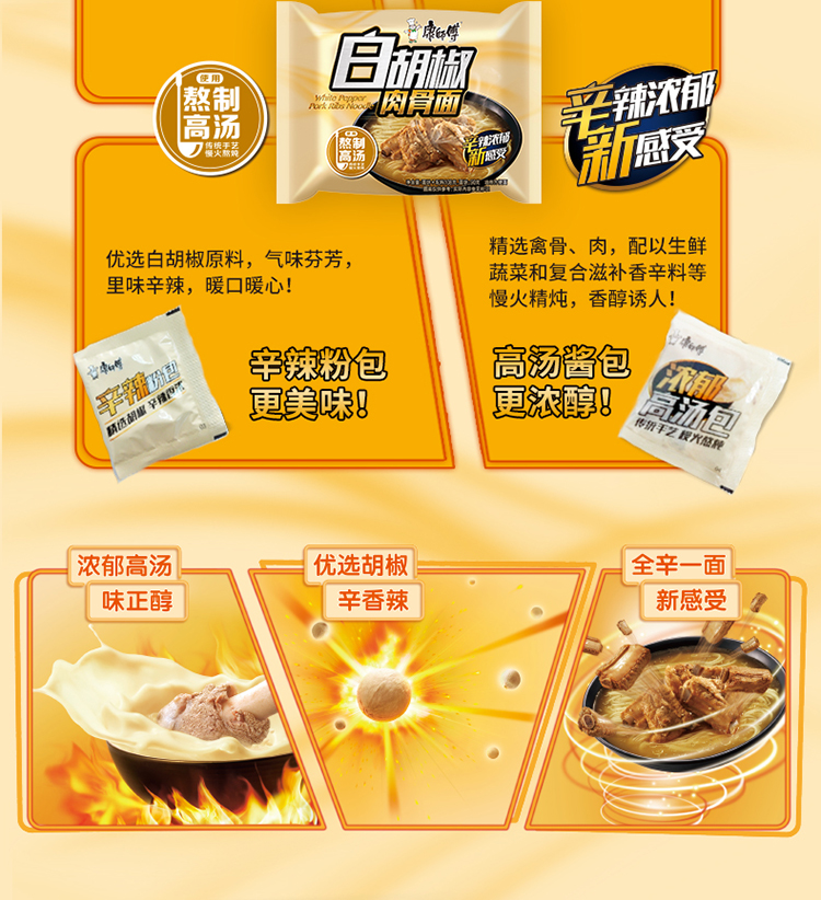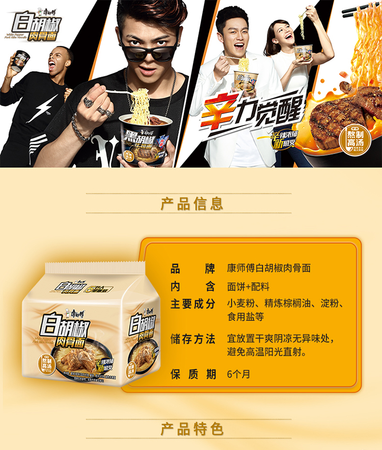 “康师傅”方便面经典系列白胡椒肉骨泡面 五连包(海洋电脑 0418商城)