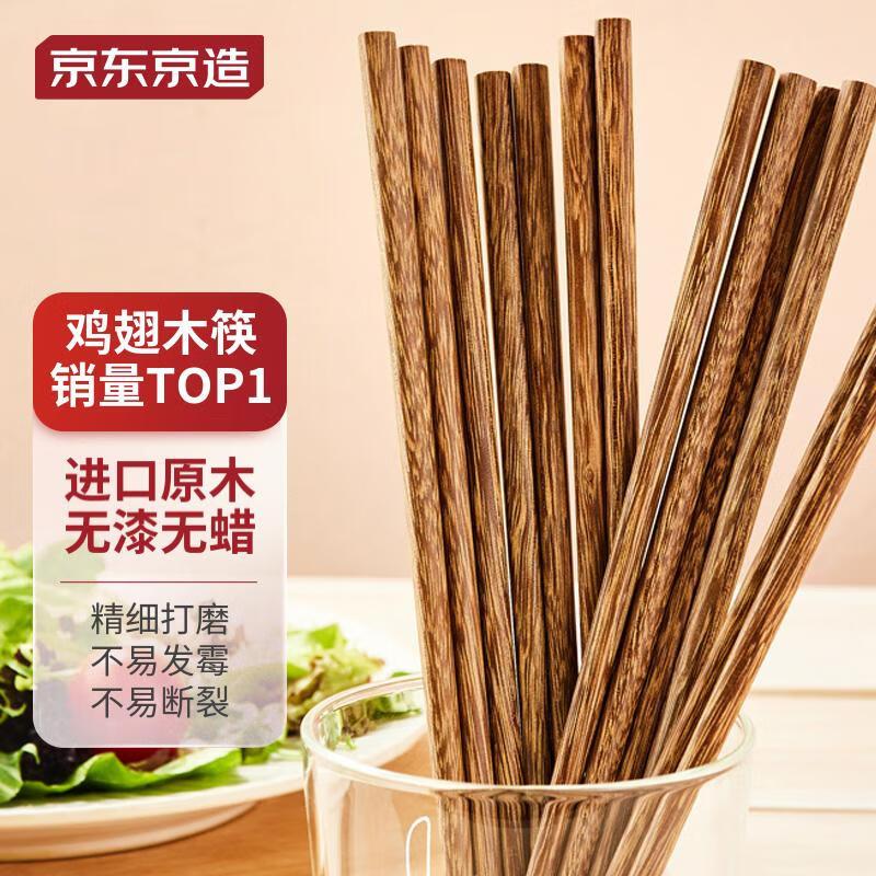 “京东京造”KED004 鸡翅木筷 单双装(原木色实木无漆无蜡防滑筷子10双/盒)