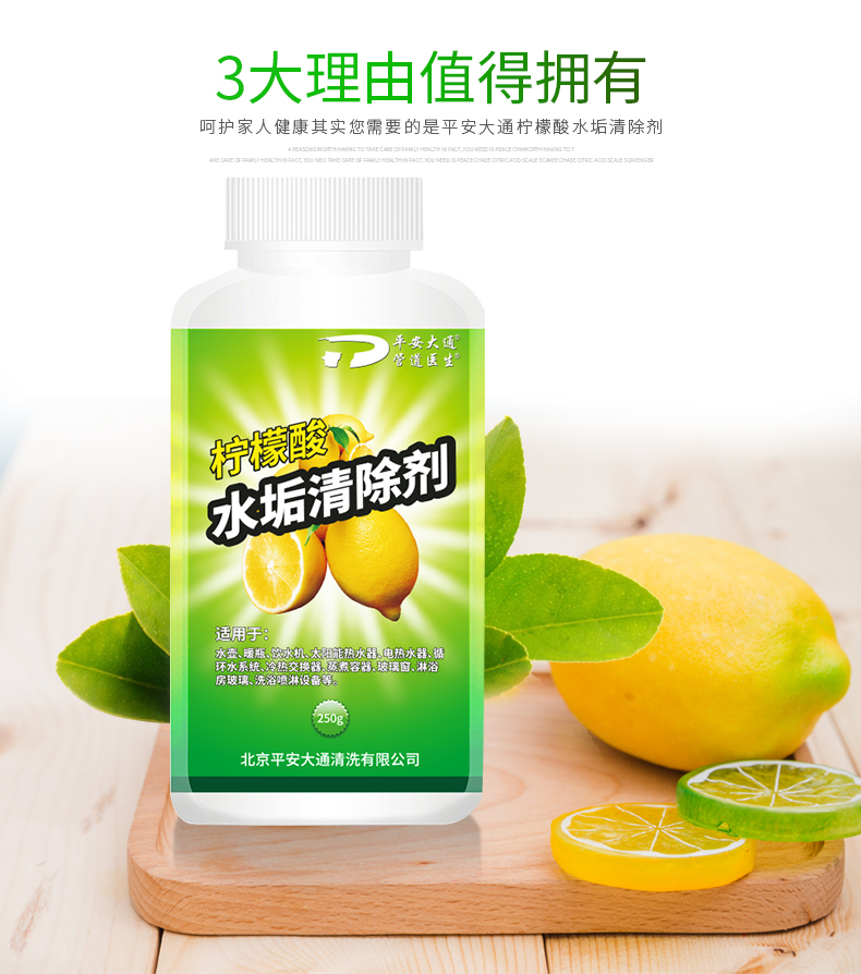 平安大通”柠檬酸除垢剂 水垢清除剂250g(海洋电脑 0418商城)