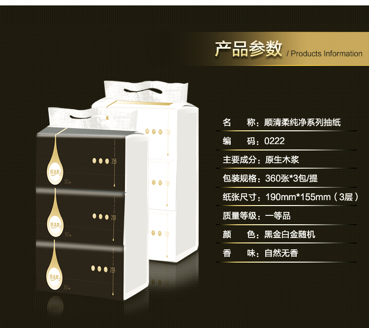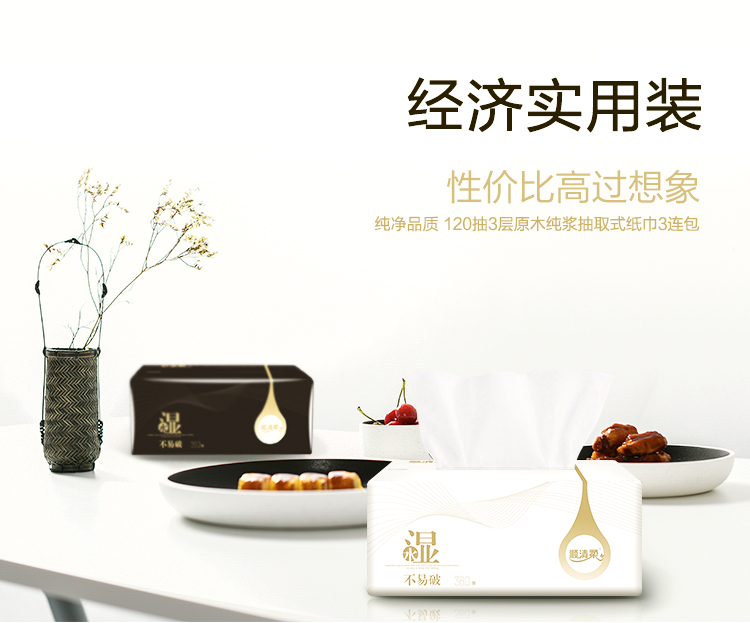 顺清柔3层120抽取式面巾纸(黑金、白金版)*3包