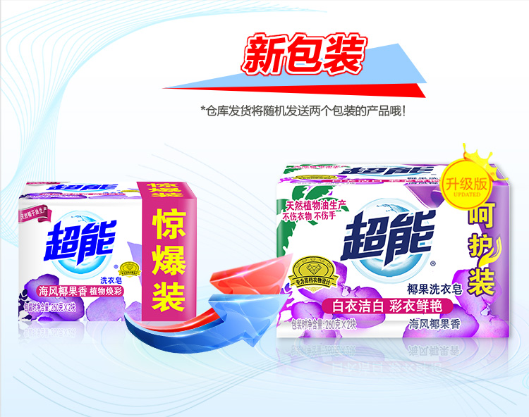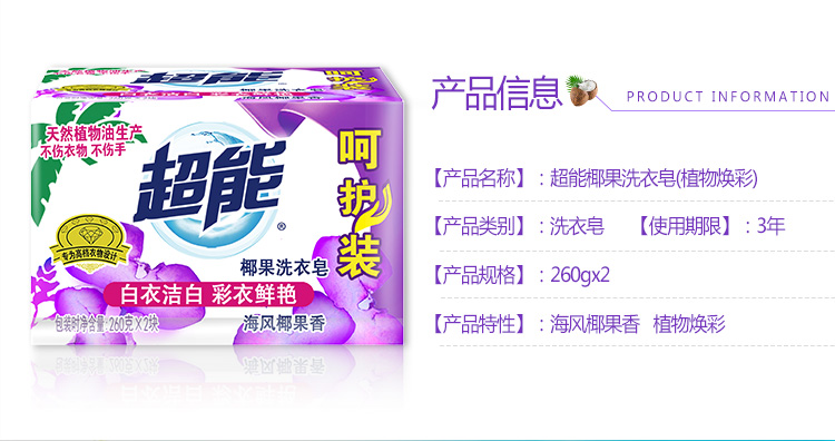 “超能”260g*2 洗衣皂 2块/套装(椰果植物焕彩新老包装随机发货 海洋·0418)